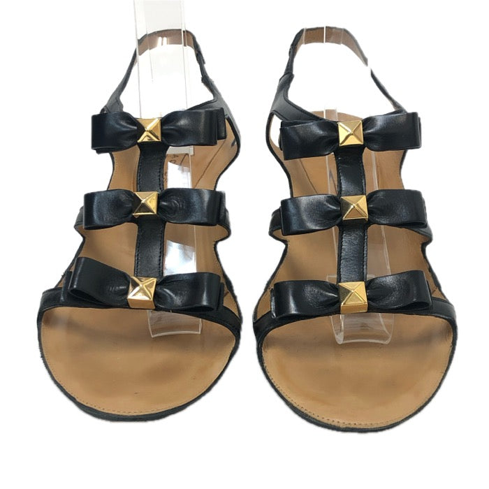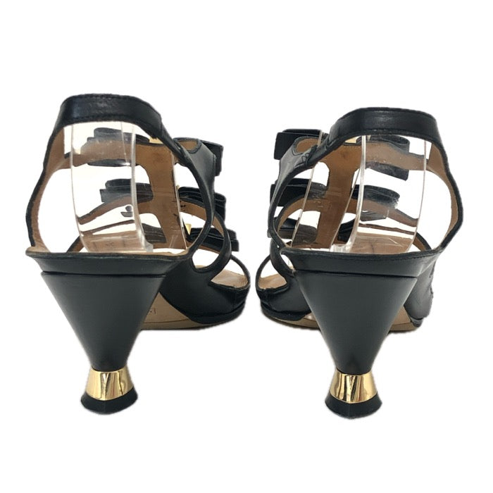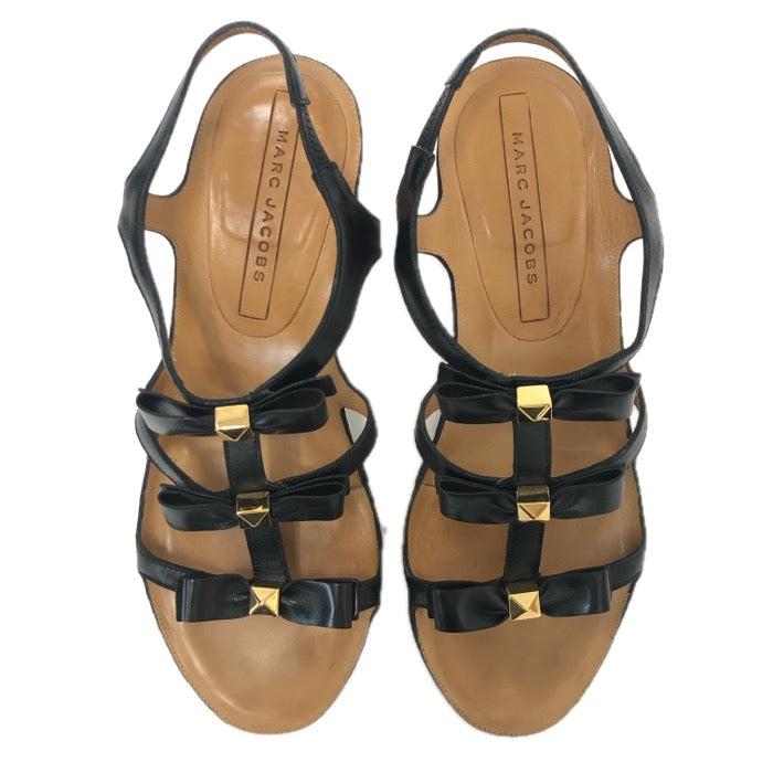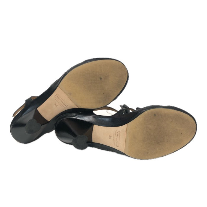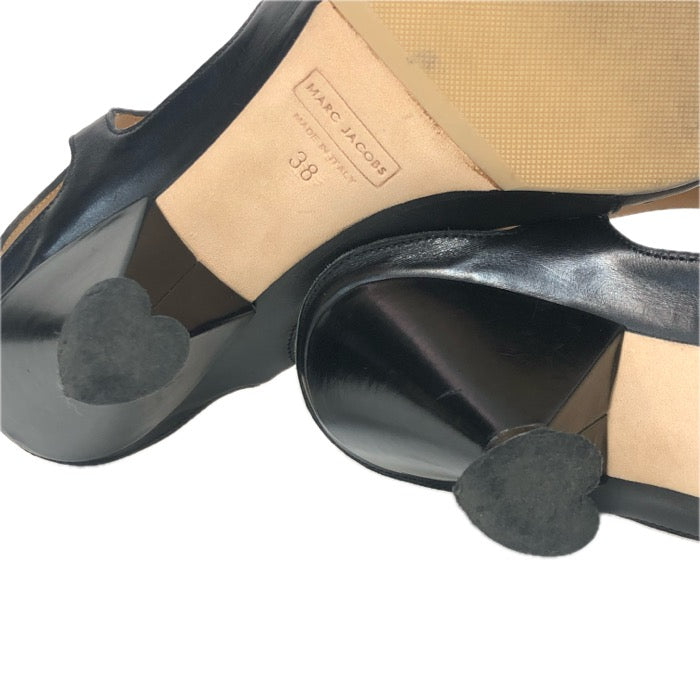 MARC JACOBS マークジェイコブス ハート型ヒール リボンサンダル レザー ブラック 7cmヒール サイズ38(25cm相当)【中古】レディース 大きいサイズ