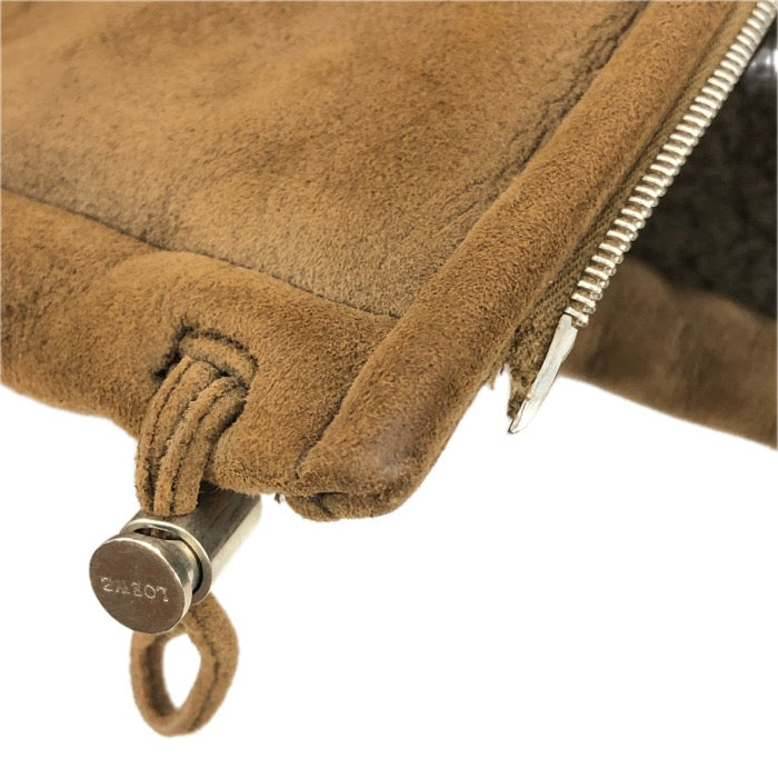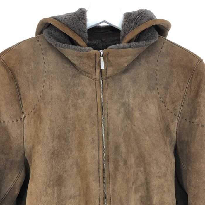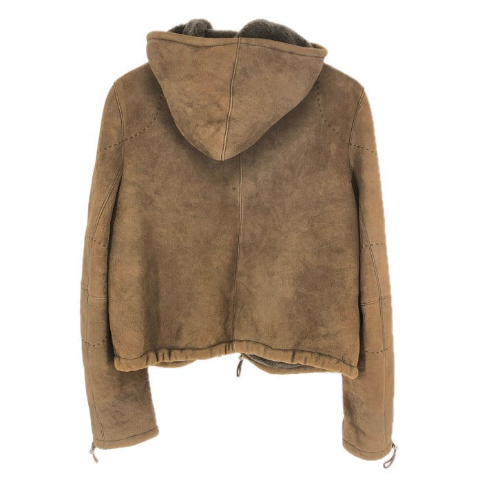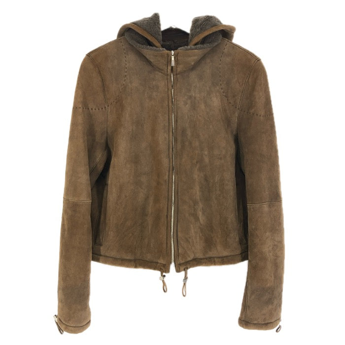 LOEWE ロエベ ムートンジャケット フード付き ブルゾン 羊革 ダークブラウン サイズ44(L相当)【中古】レディース