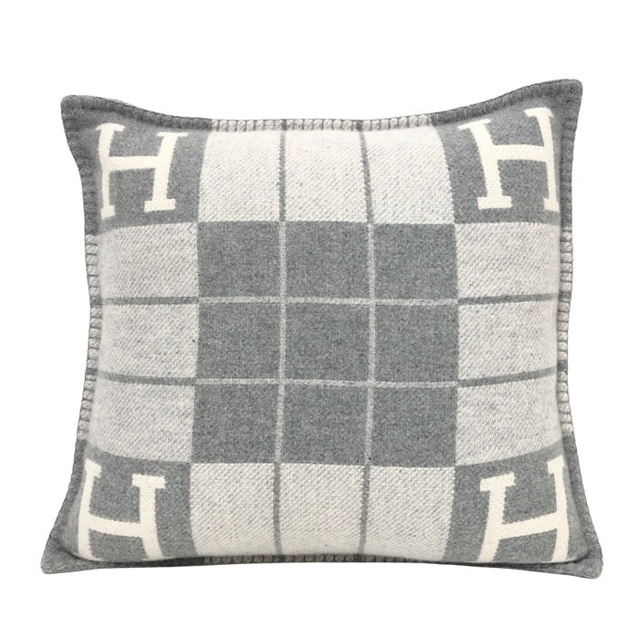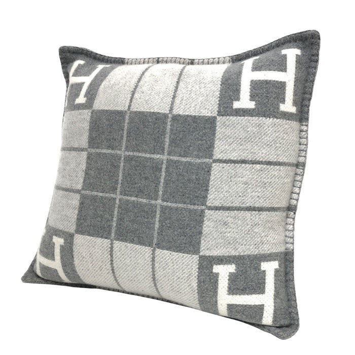 HERMES エルメス クッション アヴァロンⅢ ジャガード織 ウール×カシミヤ エクリュ・グリ・クレール(グレー系) インテリア【中古】