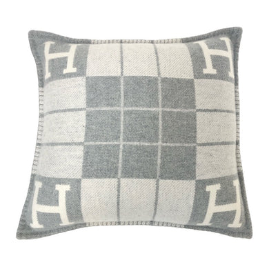 HERMES エルメス クッション アヴァロンⅢ ジャガード織 ウール×カシミヤ エクリュ・グリ・クレール(グレー系) インテリア【中古】