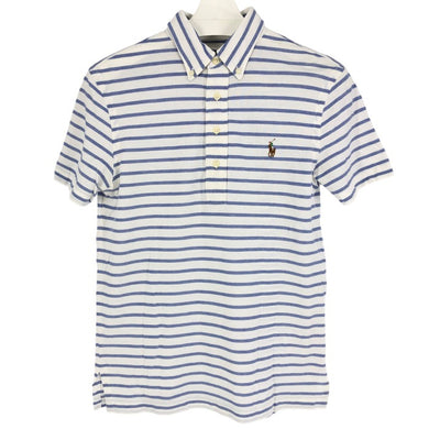 RALPH LAUREN ラルフローレン 半袖ポロシャツ ストライプ柄 コットン ブルー×ホワイト S相当【中古】メンズ