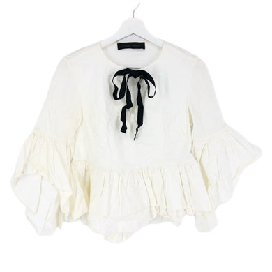 Christian Pellizzari クリスチャンペリザーリ フリル リボン ブラウス コットン ホワイト サイズ38(M相当)【中古】 レディース