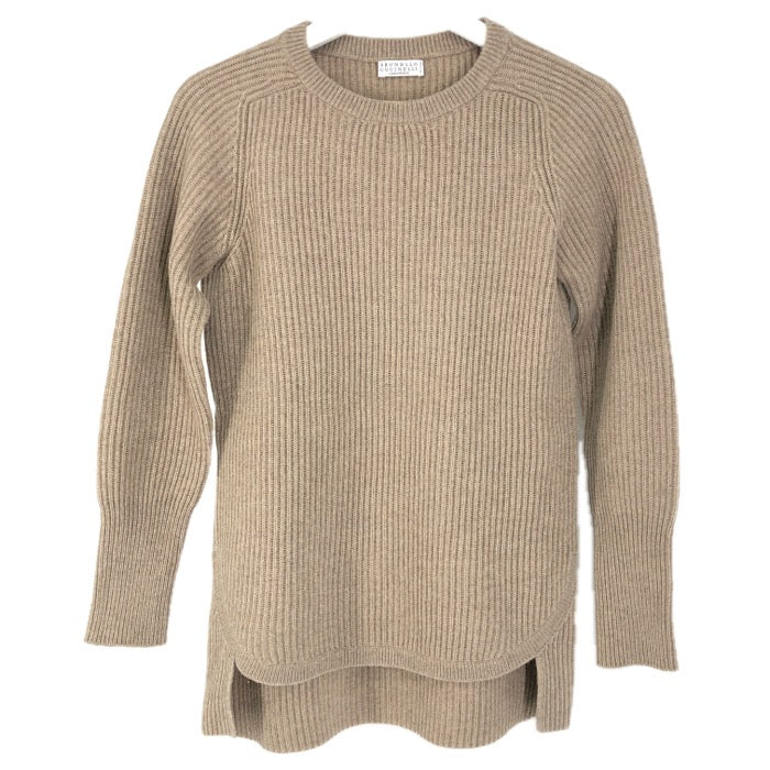 Brunello Cucinelli ブルネロクチネリ カシミヤ セーターフィッシュテール ミディアム丈 ベージュ Mサイズ【中古】レディース