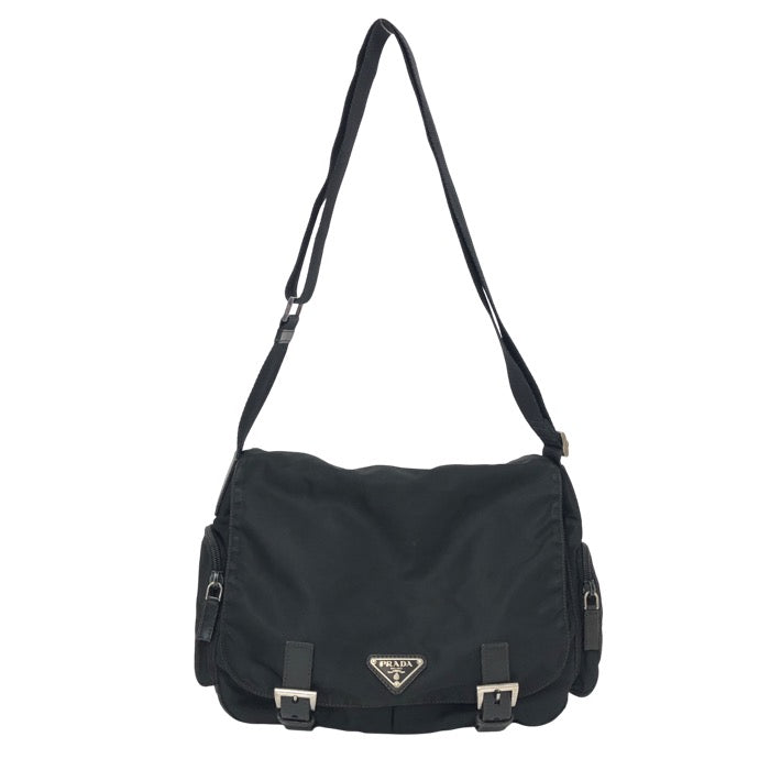 PRADA プラダ ダブルサイドポケット ショルダーバッグ ナイロン ブラック【中古】 レディース