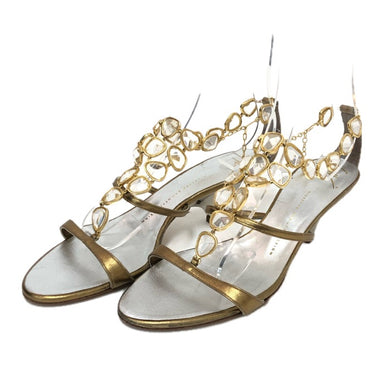 GIUSEPPE ZANOTTI ジュゼッペザノッティ ビジュー付 サンダル レザー ゴールド 6cmヒール サイズ38.5(25.5cm相当)【中古】 レディース
