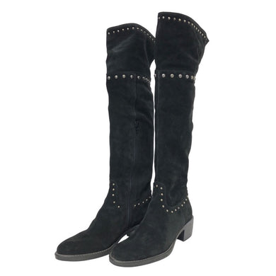 Karen Lips カレンリップス ハーフジップ スタッズ ロングブーツ スウェード ブラック 5cmヒール 24.5cm相当【中古】【新品同様】【美品】レディース