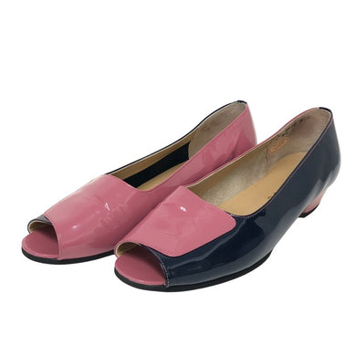 LANCEL ランセル オープントゥ パンプス パテントレザー ネイビー×ピンク 4cmヒール 24.5cm【中古】 レディース