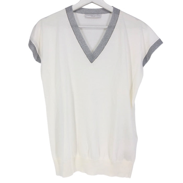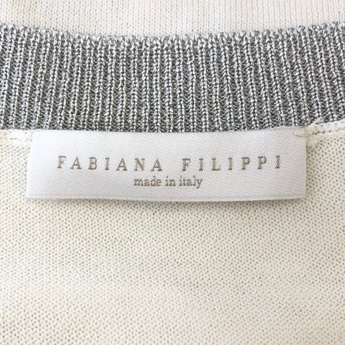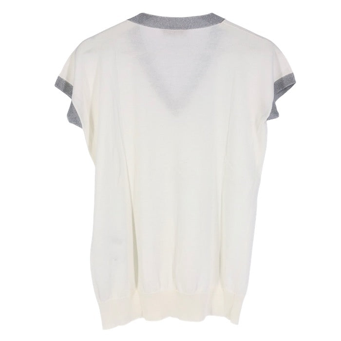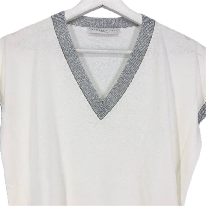 FABIANA FILIPPI ファビアナ フィリッピ Vネック 半袖 ニット(フレンチスリーブ) コットン ホワイト IT38(S-M相当)【中古】【新品同様】【美品】レディース