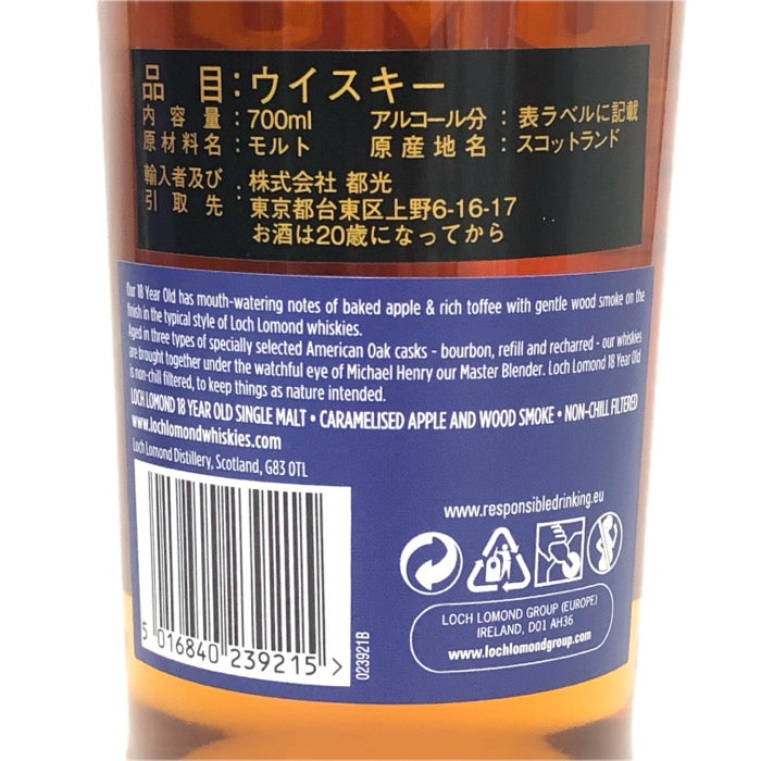 Loch Lomond ロッホローモンド 18年 700ml 46度 箱付 未開栓 シングルモルト スコッチウイスキー【中古】【新品同様】
