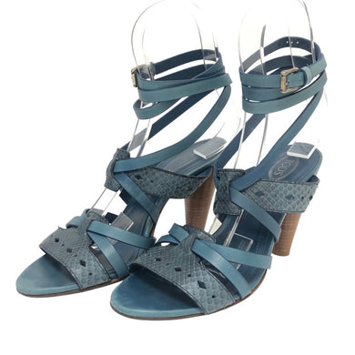 TOD’S トッズ ドライビングシューズ リボン 型押し ローファー レザー ブルー サイズ35.5(22.5cm相当)【中古】 レディース