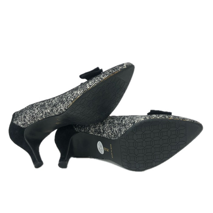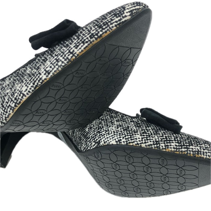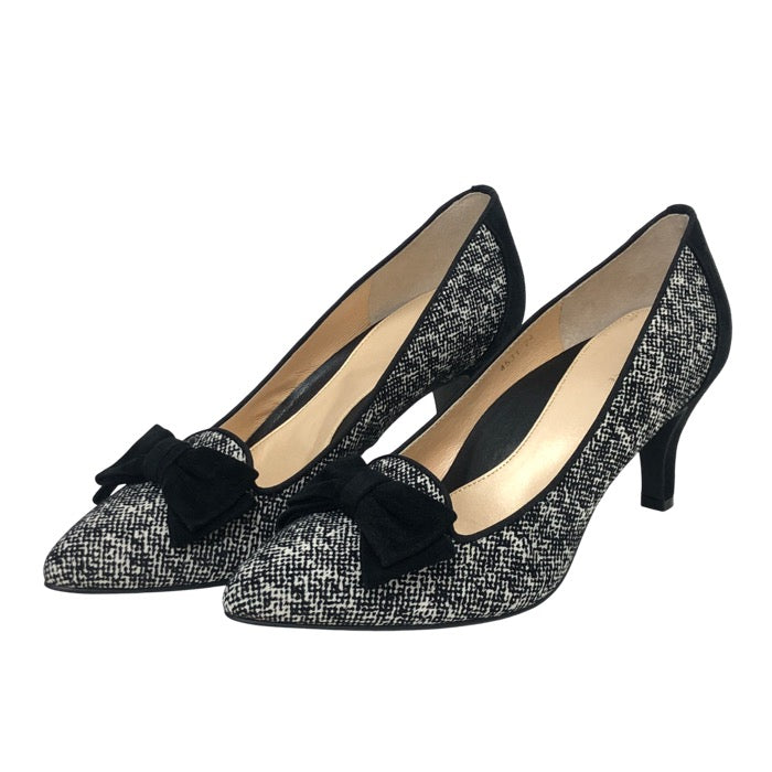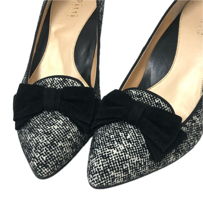 Pitti ピッティ ポインテッドトゥ リボン パンプス スウェード ブラック 7cmヒール 24cm【中古】【新品同様】【美品】レディース