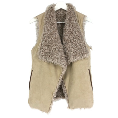 Morabito Blanc モラビトブラン リバーシブルベスト モヘヤ×フェイクレザー ジレ ベージュ サイズ38(M相当)【中古】レディース