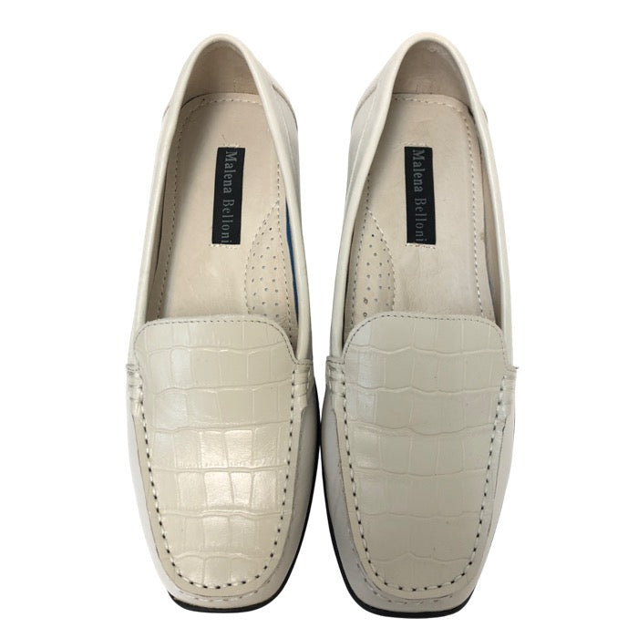 Malena Belloni マレーナ べローニ 型押し ローファー レザー ベージュ 23cm相当【中古】【新品同様】【美品】 レディース