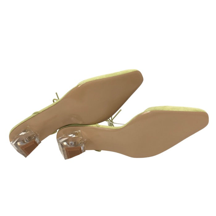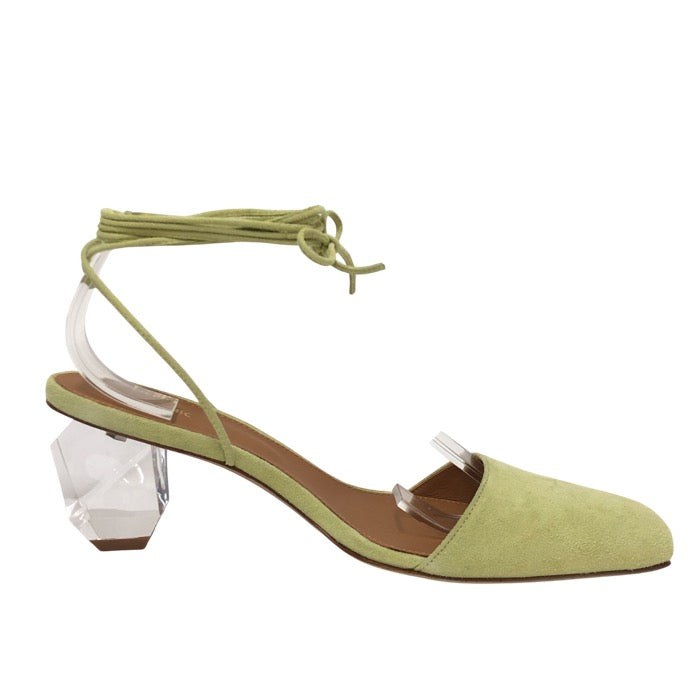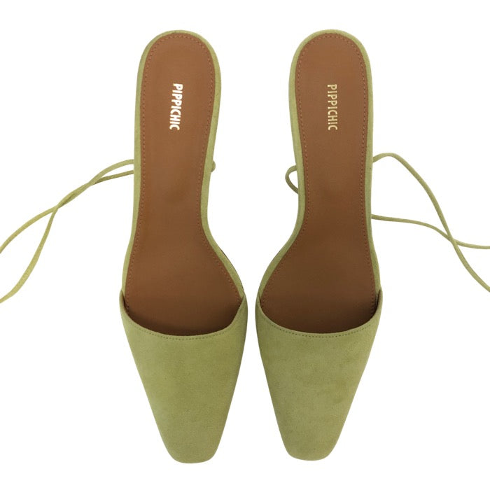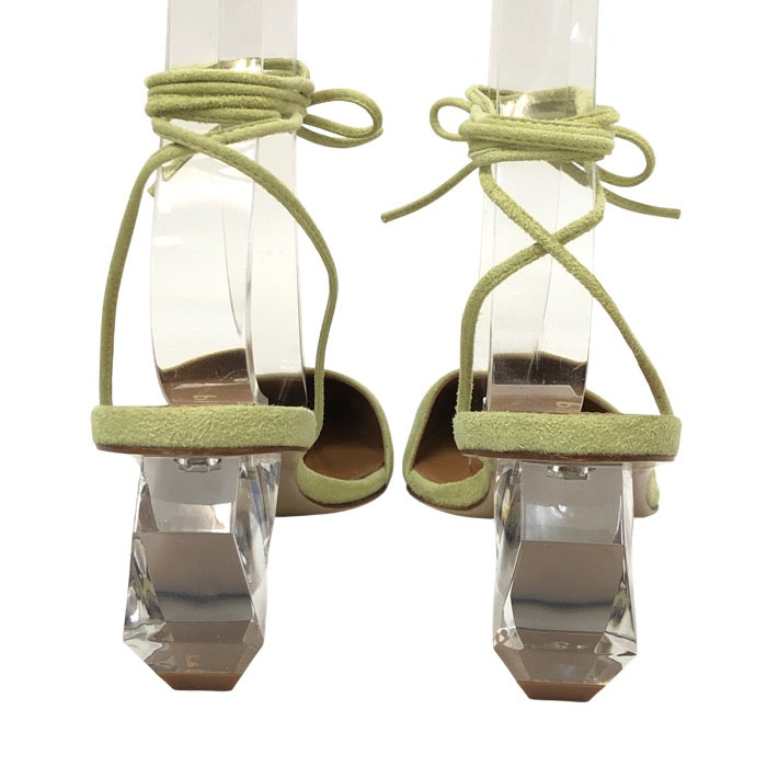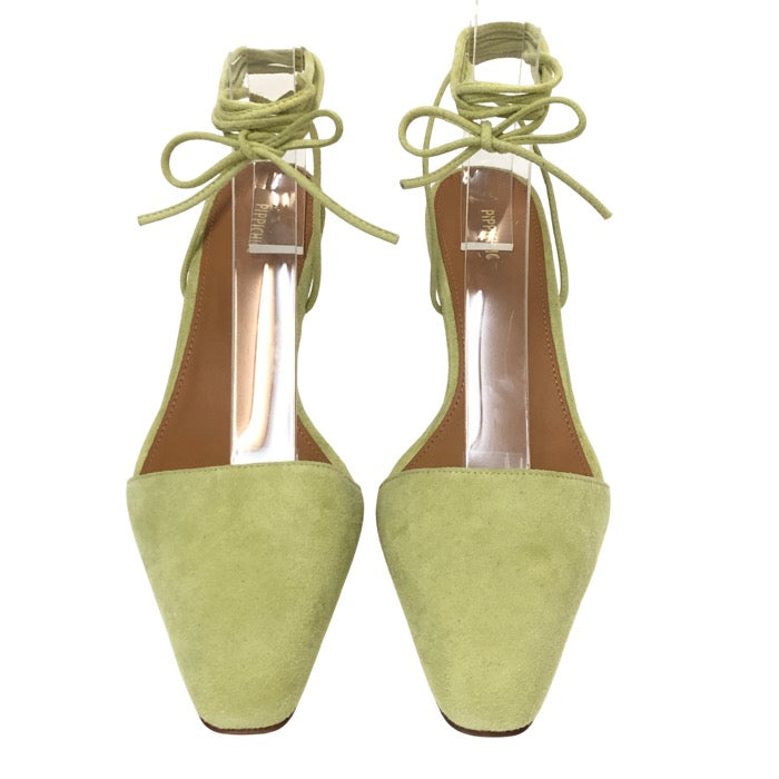 PIPPICHIC ピッピシック レースアップ クリスタルヒール ミュール スウェード パステルグリーン 24.5cm相当【中古】 レディース