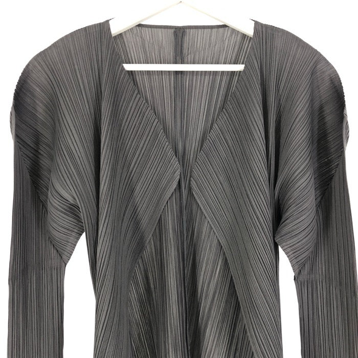 Pleated Please Issey Miyake プリーツプリーズ イッセイミヤケ PP04-JD623 カーディガン ダークグレー XL相当【中古】 レディース