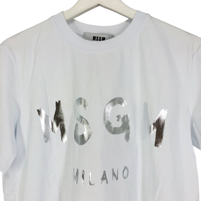 MSG エムエスジーエム ブラッシュロゴ 半袖Tシャツ ロゴプリント ペイント 3241MDM510M コットン ホワイト M-L相当【中古】【新品同様】【美品】レディース